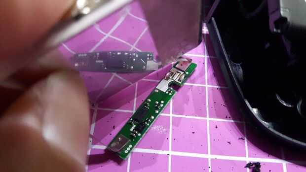 Ya en esta foto, los 3 puntos de soldadura en el tablero del IC es donde estaba el cable.
