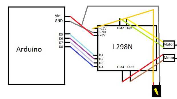 Paso 7: Enchufe OUT1 y OUT2 para el derecho de los pernos del motor y enchufe OUT3 y OUT4 del motor izquierdo pasadores en el Arduino.