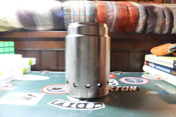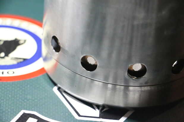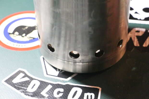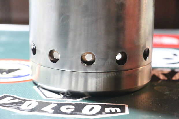 En primer lugar, deberá perforar los orificios exteriores. Asegúrese de que usted haga estos agujeros exteriores por encima de la muesca que ves unos 3/4 por encima del fondo, como esta parte de la jarra termo es separada del resto de la unidad. Perforé en el pequeño orificio, alrededor de 1/2 pulgada por encima de este hueco, con tal vez una broca de 1/8. Luego poco a poco fui hacia arriba hasta que usé una broca de 3/8 de pulgada. Luego tomó una cinta métrica y utilizado para distribuir uniformemente los agujeros a lo largo de una línea paralela a la base, para un total de 12 agujeros. Esto también es bueno porque inevitablemente empuje a través de la capa externa un poco duro y terminan por abollar la capa interna. No te preocupes esto es bueno. ¡ YAY!
