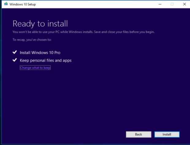 El programa de instalación comenzará a instalar Windows 10 y después de que termine el proceso de instalación de su PC se reiniciará automáticamente.