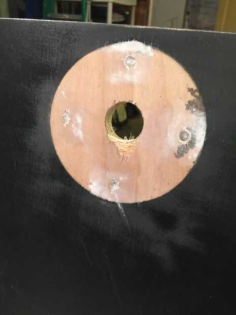 • Llenar los agujeros con compuesto de juntas si lo desea como se muestra en la foto.
