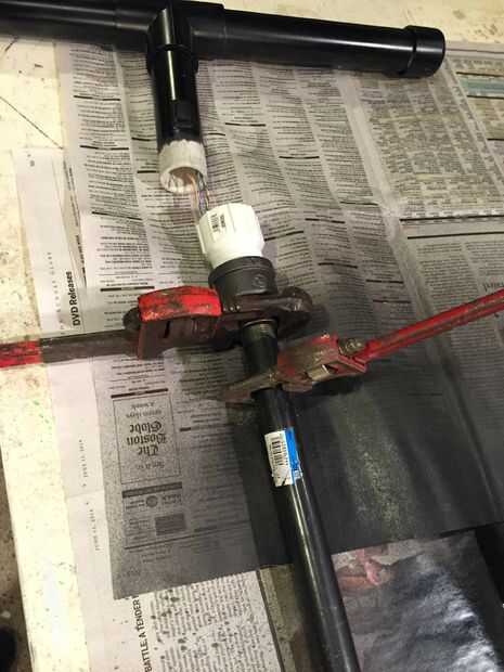 • Conectar PVC 1-1/4 "x 3/4" acoplador de 3/4" tubo de hierro como se muestra en la imagen. Utilice grandes llaves para apretar.
