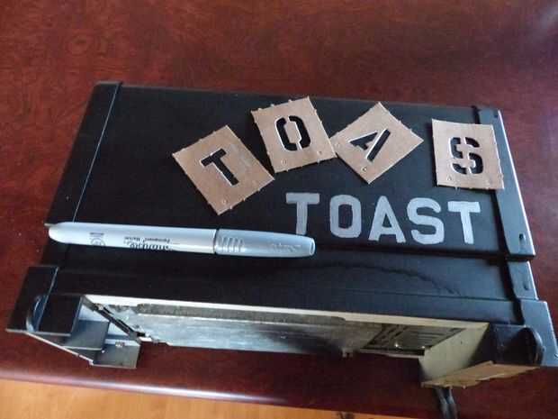 Una vez que la pintura estaba seca diseñará la palabra "brindis" en el lado de la tostadora con un rotulador plata.