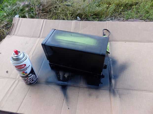 Entonces usé spraypaint negro sobre el resto de la tostadora. Yo podría haber hecho un poco más de un trabajo con el spraypaint dejé unas algunas gotas, pero eso es aceptable.