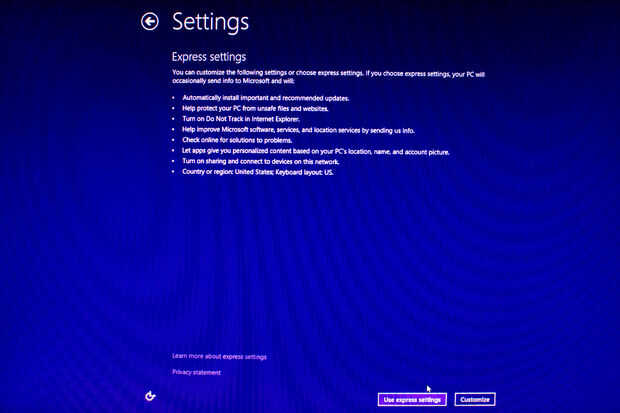 A continuación, puede personalizar opciones adicionales tales como si o no para instalar automáticamente las actualizaciones y para comprobar en línea para soluciones a los problemas. Estos valores pueden cambiarse después de la instalación así. Se recomienda utilizar configuración express de Windows 8.