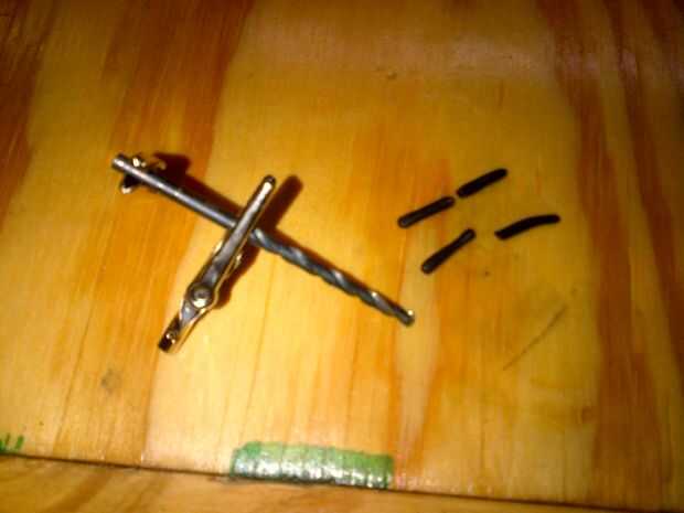 Sacar un pequeño trozo de sugru y rodillo a una serpiente sobre un 1/8" espesor y cortado en 4 pedazos de 3/8" de largo. Los cocodrilos e inserte la varilla para mantenerlos abiertos.  Inserte un pedazo de Sugru en la mandíbula superior e inferior de ambos clips.  Poner a un lado para secar.