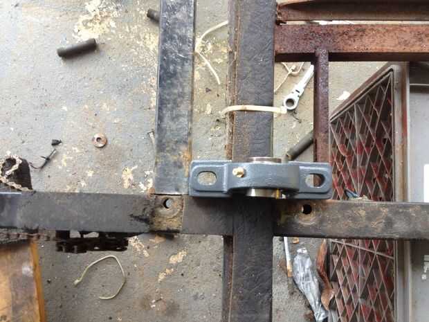 Para montaje y taladro justo ahora los dos rodamientos exteriores usando los pernos y arandelas de compra. Asegúrese de que el anillo de bloqueo lateral va en y no hacia fuera. También asegúrese de montar el rodamiento en la parte inferior del marco.