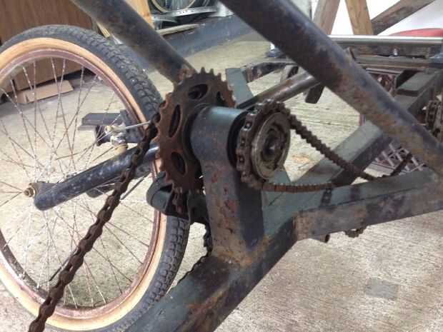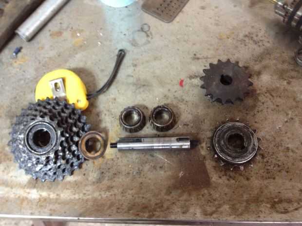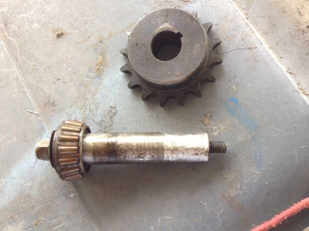 Para encajar el diente 16 3/4 sólido engranaje frente a este árbol de impulsión mediados consiste en moler abajo el eje ligeramente, ya que es métrico y demasiado grande para caber bien en unos 2 mm. Aquí están algunas fotos de lo que hice, sólo vuelva a armar el eje con alguna cinta envuelta alrededor de él para mantener el cojinete en su sitio y ataque el extremo del eje con la amoladora de ángulo, comprobar cuidadosamente su trabajo hasta que se adapta cómodamente y al ras. Luego soldar el engranaje en el eje con el engranaje lateral hacia fuera y volver a montar.