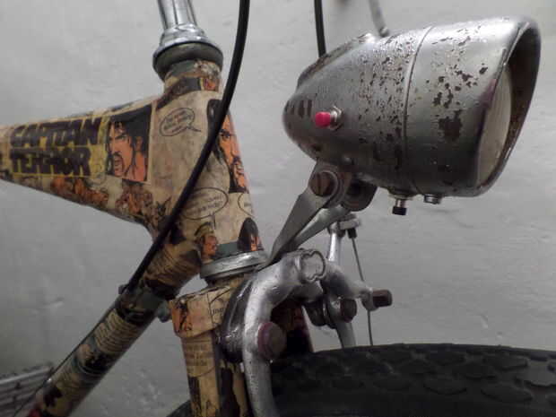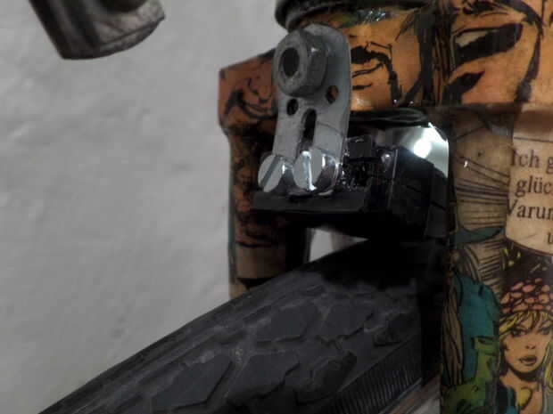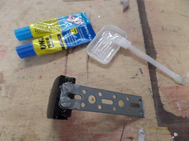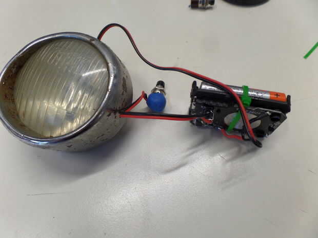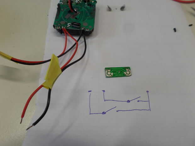 Un error que demostró para arriba después del paseo de la primera noche fue el hecho, que había soldado el interruptor de la luz directamente sobre el interruptor original. Sucedió un par de veces a pesar de que hay casi no hay traqueteo, que se activa el interruptor y la luz se fue. Para evitar eso, pongo un poco de pegamento en el interruptor original, y también las baterías con abrazaderas para cables.