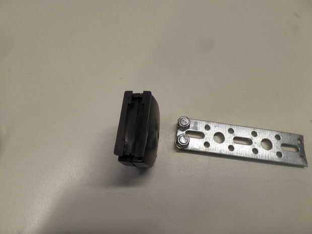 Por último la parte más fácil, el problema del sensor. Lo que debemos hacer aquí es disminuir la distancia entre el sensor y speedo. Así que el sensor tiene que llegar tan alto como sea posible y la luz tiene que llegar lo suficientemente bajo como para recibir una señal. Usé una tira de metal con orificios, algunos tornillos y epoxy para conseguir el sensor derecho sobre el neumático por debajo de la bifurcación del puente y grabó un imán de neodimio plana pero fuerte dentro del neumático. Problema resuelto! Bono: el feo sensor está oculto. Malus: neumático probablemente recogerá no sólo herramientas...
