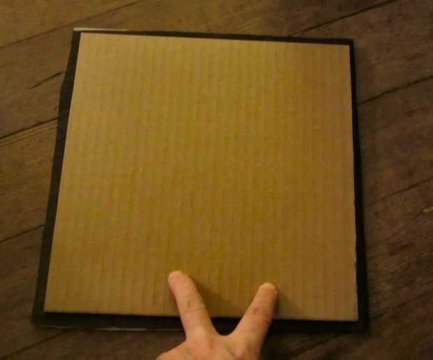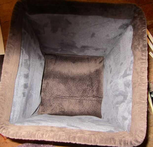 Cortar un cuadrado de cartulina para caber dentro de la parte inferior. En mi caso, porque la tela era gruesa, tuve que recortar los bordes de la plaza por una media pulgada.