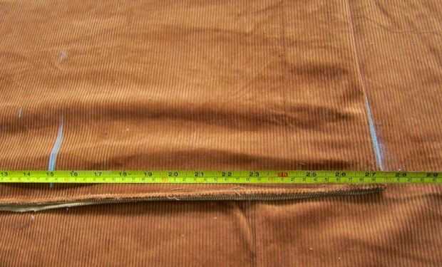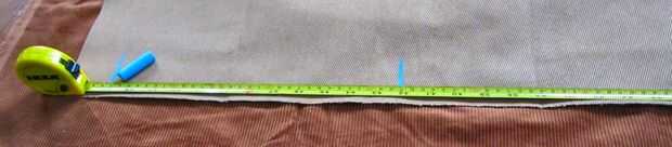 En el lado derecho de la tela exterior, la marca de donde las esquinas de la caja serán y trazar una línea recta indicando en tiza.  Esto más tarde se utilizará como guía mientras está cosiendo las guías de la pared.
