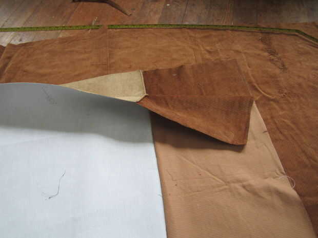 Abra la tela plana y doblarlo en la mitad, derecho contra derecho juntos, con la costura superior, pasando por el centro.  Coser la costura lateral del tubo.