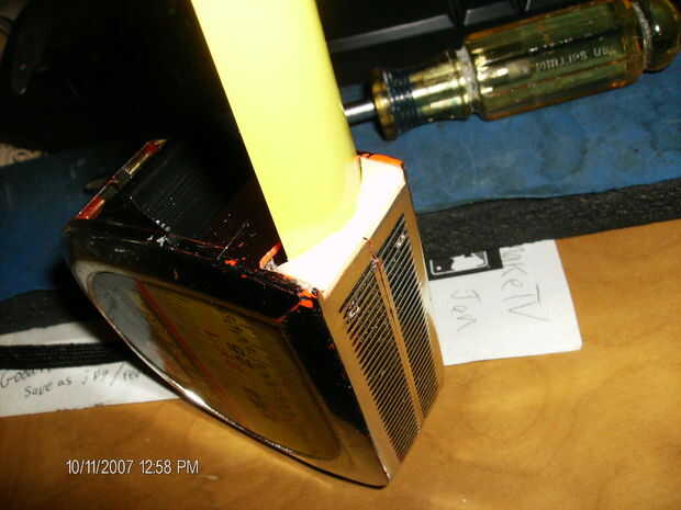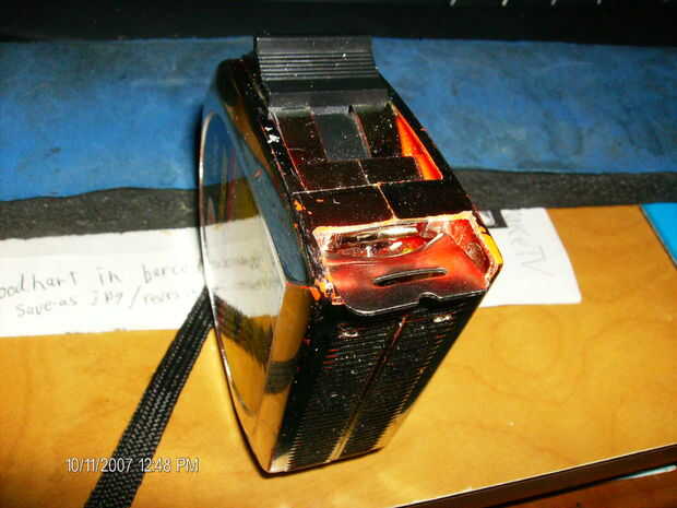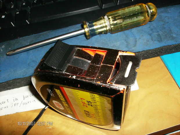 Otra cosa, en la segunda foto, donde el extremo de la cinta métrica debe estar, parece como si hay un hueco allí. La Guardia no fue bien colocada antes de las mitades se quebró, por lo que al final de la cinta se deslizó en el cuerpo del mecanismo. Una vez más, el caso debe abrirse, y todo descolocado (un efecto secundario de este desalineamiento era que el mecanismo de bloqueo no funcione bien).