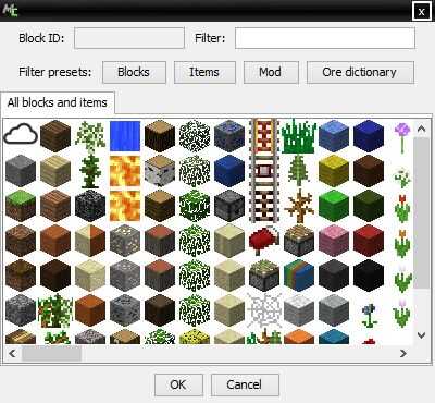 Haga clic en cualquier usted quiere tener ingrendiente la ranura y se te presentará un menú agradable lo que le permite escoger un bloque que desee. Nota: elementos de desbordamiento en la x y y direcciones tienen barras de desplazamiento, utilizar em para encontrar el bloque o elemento que desee. Continuar con el proceso para todos los ingredientes en su bloque, ya sea elaboración o fundición.