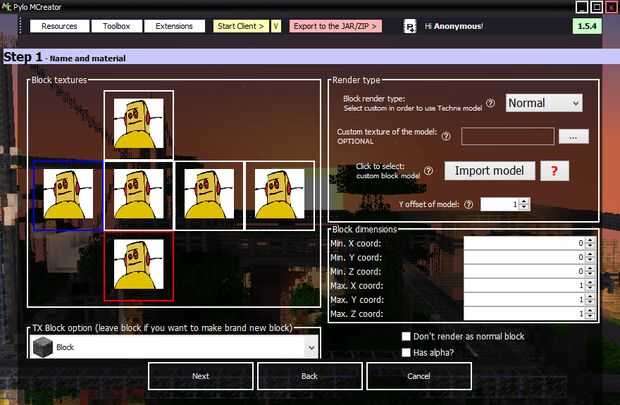 MCreator debe haber sido lo suficientemente inteligente como para llenar todos los lados para con la textura que usted eligió. Si no es así, hacerlos a mano. Mismo proceso. : P