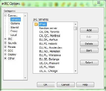ir a archivo > Seleccionar servidor y elija el Efnet. Haga doble clic para abrir su carpeta y haga doble clic en servidor al azar (o un servidor de su elección) dentro de la carpeta. Luego subirá con una página que le pide un nombre de usuario deseado. Sugiero no utilizar información personal en el que uno. Después, haga clic en conectar. Esperar un par de segundos, y si ha conectado a efnet correctamente, MIRC wll preguntarle qué canal/sala le gustaría ser pulg esto es donde usted escribe en
