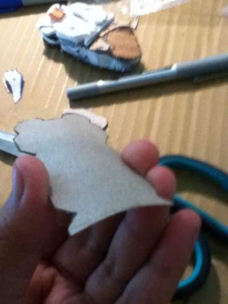 Para hacer la parte inferior inclinado tomar el semicírculo y dibuja la figura sobre el cartón. Ahora toma la cola uno y rastrearlo justo en la parte superior del círculo semi plano. Corte forma huevo ovalado y pegamento caliente en el semicírculo del oso en una posición inclinada. * para que sea 3D más doblado el semicírculo llevan pegado un poco en la thing.* oval