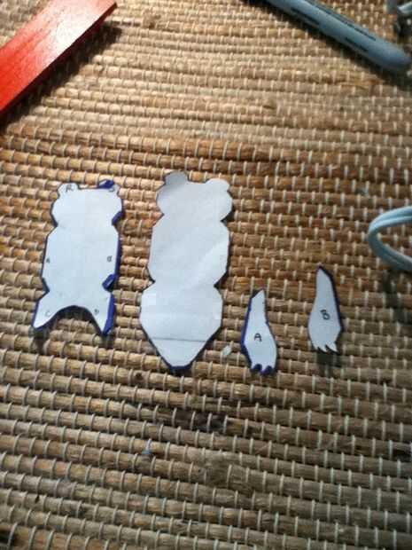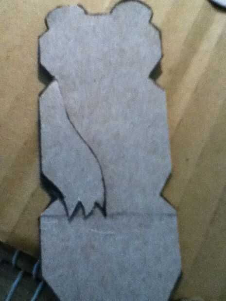 Al igual que el cuerpo trazó el oso y comentar los brazos. * Recuerde que el tótem es como un puzzle si una parte está apagado o no todos pueda caer revés.* cortar dos de ésos hacia fuera hace que uno es opuesto de otro. Para la nariz, hice un pequeño rectángulo no saben exactamente las medidas pero recuerdo que la primera línea subió 1-2 pulgada y la mediana edad era el más pequeño el último era de tamaño medio. Las fotos realmente te ayudará. Después de listo con el dibujo doble en las líneas y un cuadrado pequeño de cartón para el pegamento. Hacer lo mismo para el otro lado y recorte el exceso. Rellenar con pegamento caliente después de secado. Poner los brazos y la nariz a un lado para más tarde.