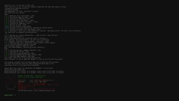 - Una vez que conecte su tarjeta SD y arranca para arriba, usted debe ver la a la Pi el símbolo del sistema se vuelven locos.