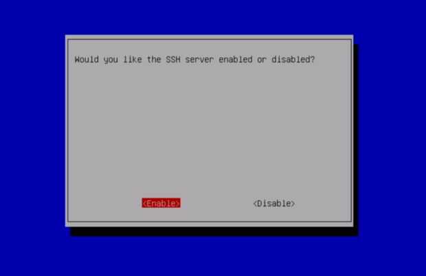 - También, vamos a habilitar SSH en caso de que tenemos que aprovechar el sistema a través de IP. Podemos lograr esto entrando en Opciones avanzadas > SSH > Activar > Pulse Ok.