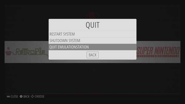 - Ahora que tienes el pendrive conectado, es hora de reiniciar el RetroPie. Sin embargo, un truco que me gusta hacer es Pulsa el botón de inicio y haga clic en dejar de EmulationStation. RetroPie sólo tiene que reiniciar, no necesariamente la frambuesa Pi sí mismo (aunque sólo puede retirar el tapón y vuelva a conectarlo...).