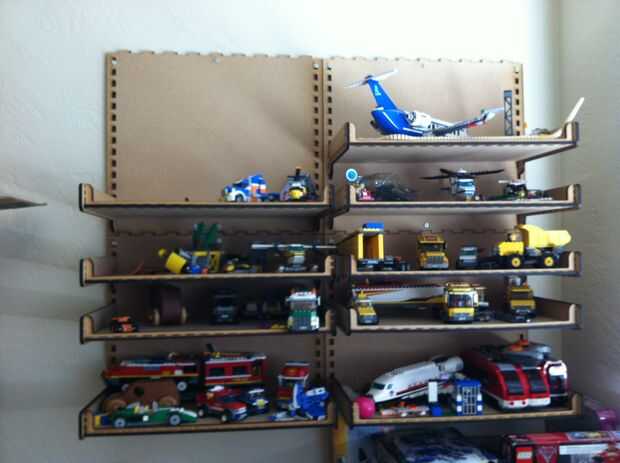 Construir tantos estantes como se ajuste a sus necesidades. Deslice en los tableros y les empuje hacia abajo para fijarlos pulg
