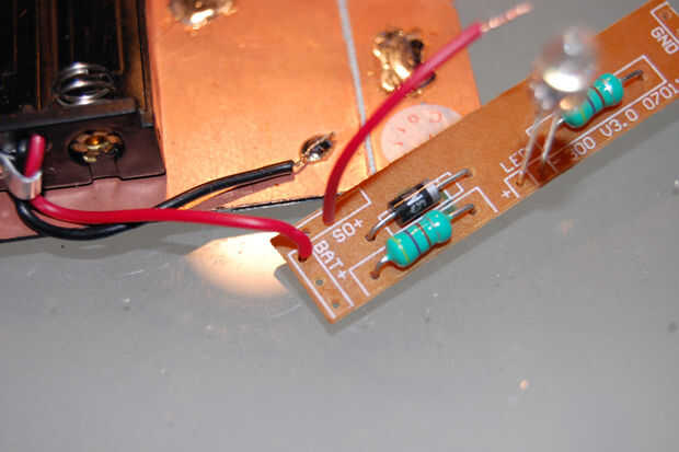 Ahora, tienes dos trozos de alambre de izquierda, que fueron cortadas de soporte de la batería: rojo y negro. Si no tienes ningún cable, o son demasiado cortos, no importa, sólo tiene que utilizar cualquier cable aislado que tienes.