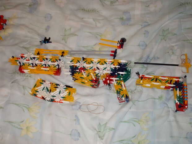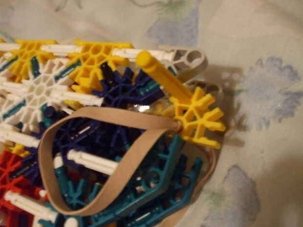 1) se reúnen todas las piezas. incluyendo 2 pequeñas bandas de caucho