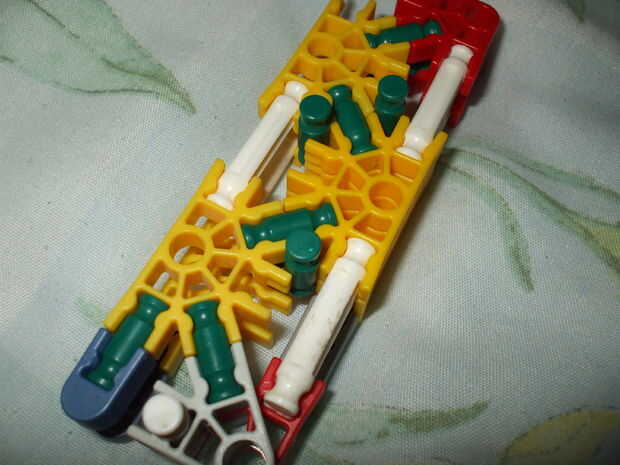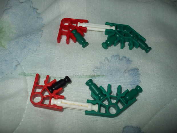 7) Añadir barras verdes - un interesante método de conexión, que funciona bien en manijas, fija en sólidamente, pero no tiene ningún empujando hacia fuera los extremos...