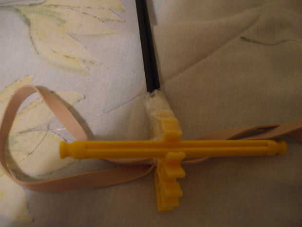 12) hacerlo. Tenga en cuenta la cinta, la barra negra y las 2 bandas de goma.