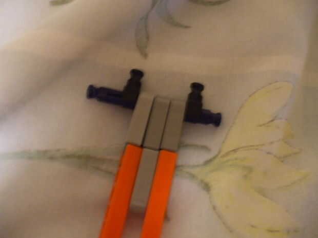 6) fije, nota cómo las barras verdes (negro) se destacó y empujó hacia atrás, en el conector azul.