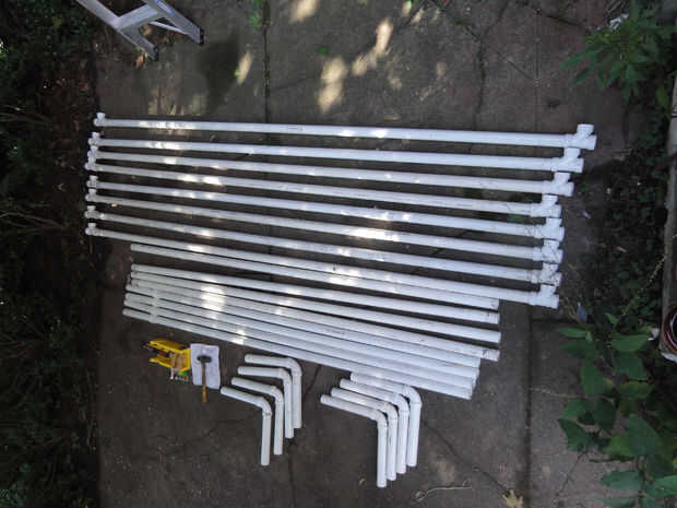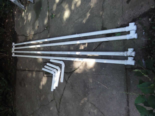 Las diferentes piezas necesarias para la Sucá se muestran en la siguiente foto. También hay un primer plano de como luce el codo de la esquina.