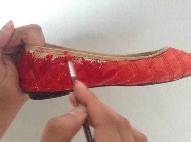 También habrás dado cuenta que en la foto no he pintado la parte superior, ¿por qué? Ya que esa parte necesita concentración real así que usé un cepillo pequeño (Nº 1). Pintar cuidadosamente y tratar tan duro como sea posible no se pintura sobre la tela de la guarnición.