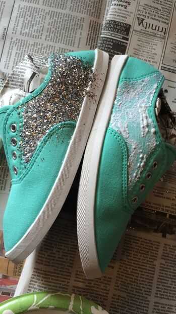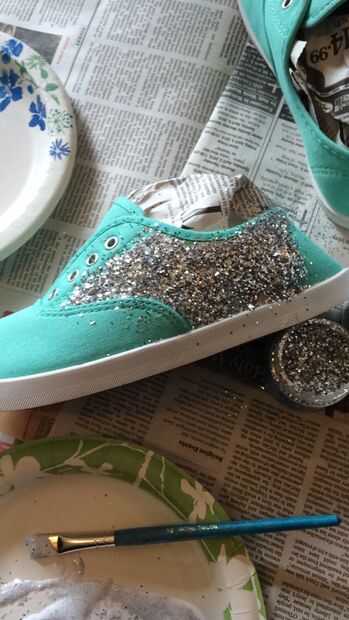 Paso 9 espolvorear purpurina más sobre la sección de pintado)