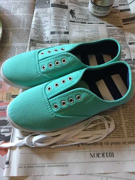 Tomar los cordones de sus zapatos y apartarlas. No queremos los cordones que la mezcla de glitter/modge podge.