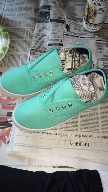 Queremos rellenar los zapatos con el periódico porque esto protegerá el interior de los zapatos se trabarse para arriba con la mezcla de glitter/modge podge. También hará que tus zapatos la pintura más fácil!
