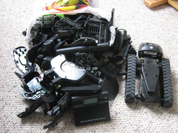 Una gran cantidad de basura de plástico negro. Que utiliza, entre otras cosas: