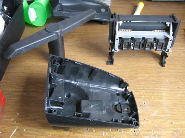 Tome la parte posterior de la caja y colocar el controlador de la bomba (será la columna vertebral y los hombros) y una impresora en la parte superior (cabecera de Barbie).