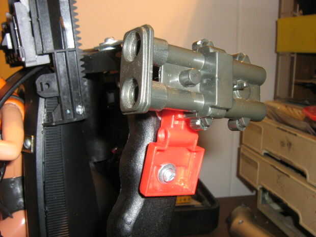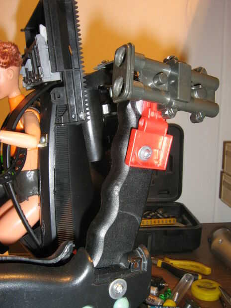 Instale el control en la parte posterior, más armas y coloque las pilas (la batería tiene espacio para ocho, pero usar sólo seis).