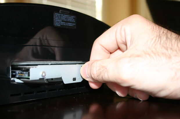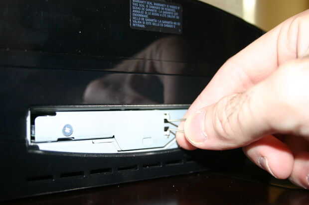 A continuación, extraiga la manija de alambre pequeño y utilice para deslizar la bandeja todo el disco duro a la derecha. Una vez su todo el camino a la derecha, tire de ella hacia usted y deslícela hacia fuera. Mitad de camino allí.