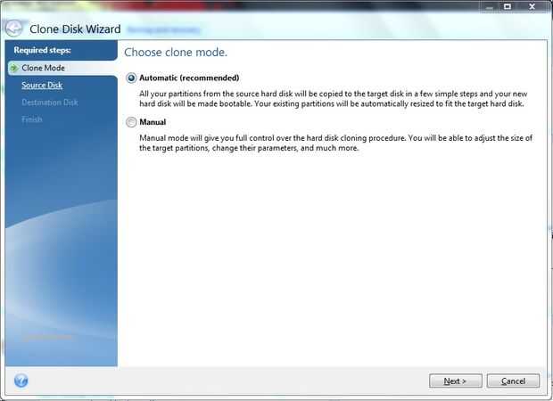 3. Seleccione disco clon. Esto inicia al asistente de disco de copia.