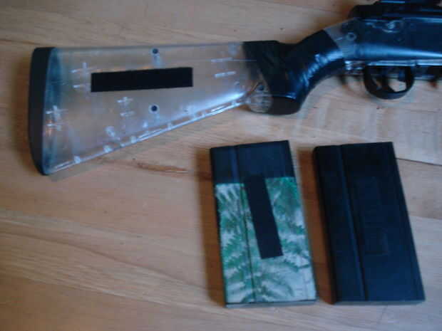 Utilizando alguna cinta de Velcro y dos minutos, aquí está Cómo hice un sistema de recarga más rápido que puede ser operado por la sensación, sin siquiera tener que tomar sus ojos lejos de los lugares de interés. Dado unos minutos de práctica, uno puede conseguir los movimientos requeridos memorizar, lo que les permite ir de cargador vacío a tiro a cinco segundos.