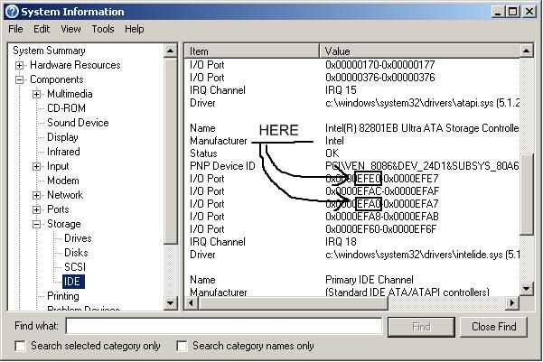 3. encontrar el controlador SATA - allí deben ser 5 puertos i/O a continuación se