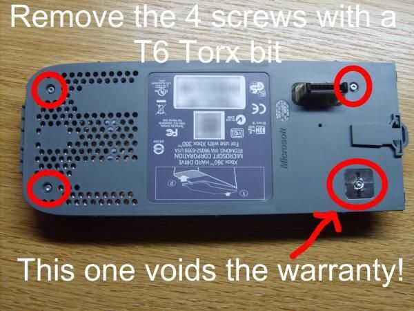 3. Utilice la punta Torx T6 para quitar los 4 tornillos sobre el caso. Usted tendrá que romper la pegatina de Microsoft para acceder a la última de ellas.