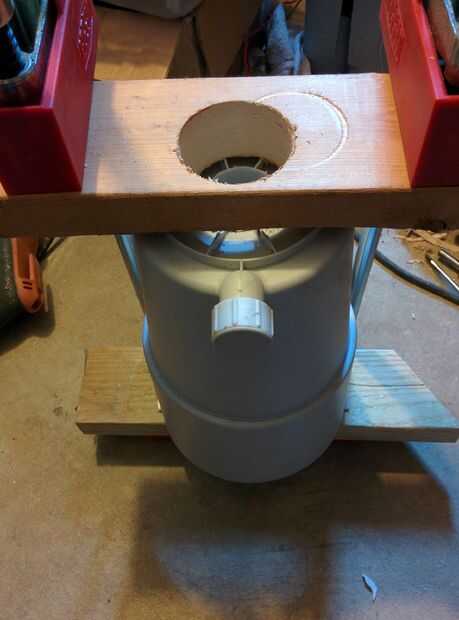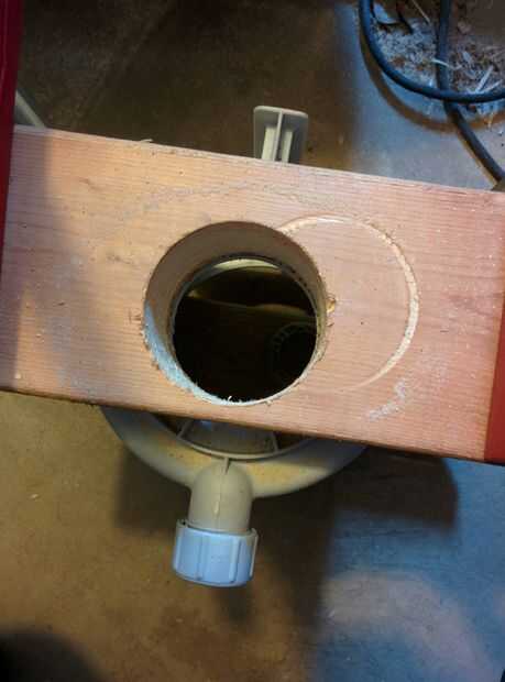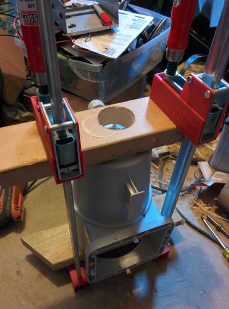 e. usando el agujero en el tablero como una guía para el taladro, corte lentamente el agujero en el filtro con el taladro lentamente en sentido inverso. Esto evita que los dientes de la Sierra de agarrar el plástico y rasgado el taladro de las manos. Esto sólo funcionará con una sierra que tiene un bloqueo además el punto de montaje roscado.