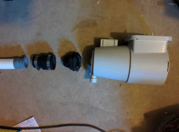 r. la primera imagen muestra el "despiece" de la actualización. De izquierda a derecha: nuevo filtro manguera, acoplador flexible, a granel Unión cabeza, caja del filtro.