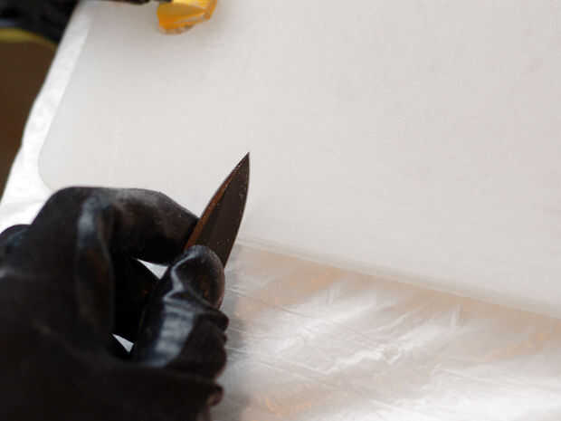 Como el proceso de lijado ligeramente modificará la forma de la Junta, tomar una hoja y raspar los bordes de la Junta para obtener un bonito bisel limpiado después he terminado de lijado.