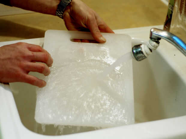 En tercer lugar, utilizar una esponja con jabón para limpiar la superficie del tablero nuevo. Enjuagar, dejar secar y disfrutar de sus tablas como nuevo.