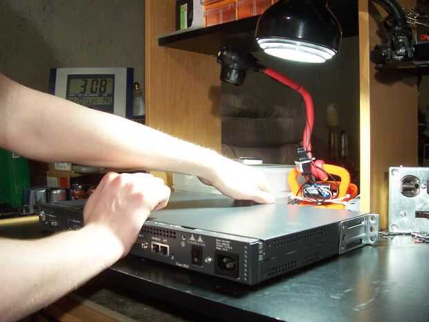 Una vez que tienes el caso del router, deslícela hacia atrás en apretado, luego vuelva a colocar todos los tornillos que quitó.